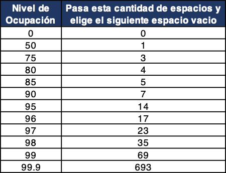 Regresando a nuestro dilema inicial de si parqueamos en el siguiente espacio vacío que veamos o no, podemos ver que este dilema es también un problema de detención óptima y se deriva del original revisado anteriormente, pero utilizando como variable principal el nivel de utilización del parqueo.