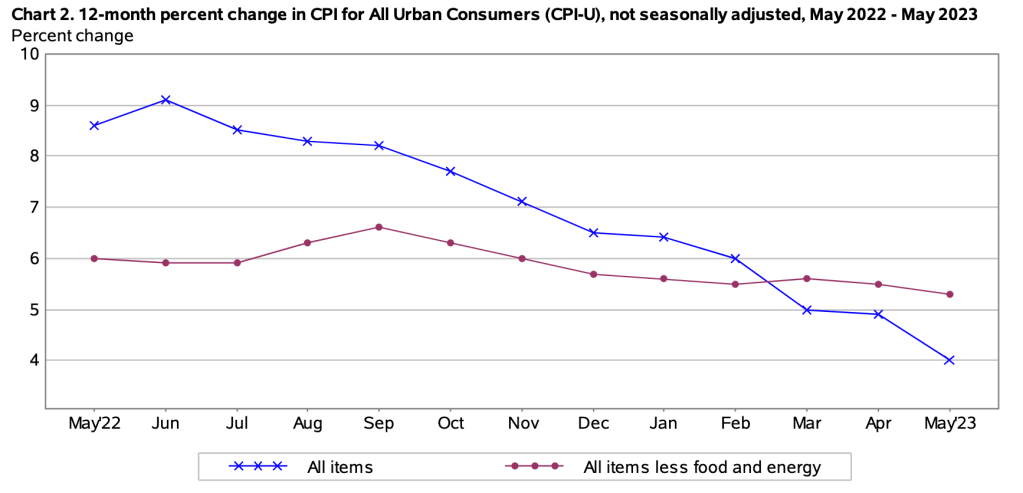 Yo no veo que eso es lo que la data nos está mostrando y creo que el rally de las últimas semanas se debe a otro factor no relacionado a la batalla contra la inflación. Veamos la data directamente de la fuente del reporte que salió el pasado martes 13 de Junio por la Bureau of Labor Statistics donde se comenta sobre el CPI: