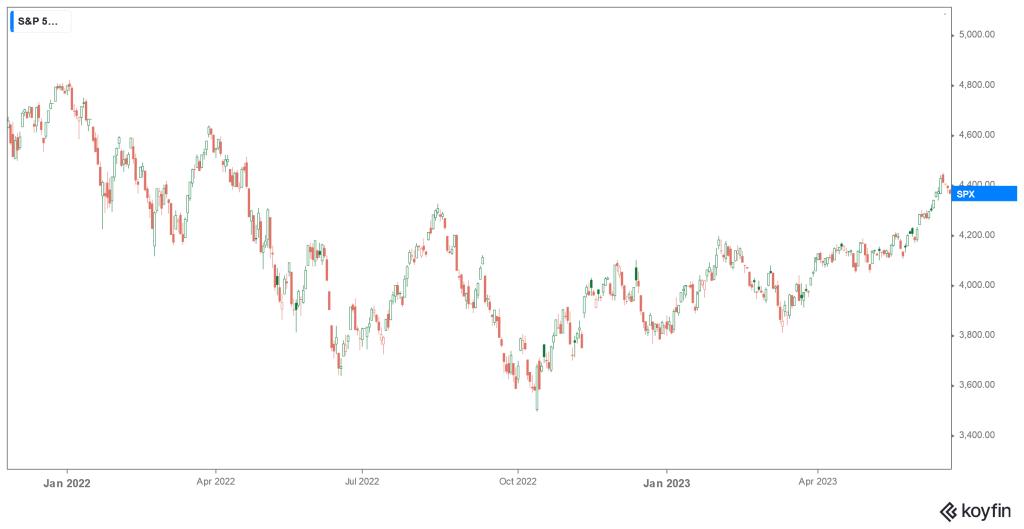 Los medios indicaron que el crecimiento prolongado, seguido del rally que tuvimos el 15 de Junio, se debe a que la Reserva Federal decidió hacer una pausa en las tasas de interés. Esto no significa que las tasas han caído, al contrario, el rango en el que se mantienen todavía es entre 5 a 5.25%. Argumentan también que como el mercado siempre es forward looking, y la data de los últimos meses apunta a una mejora en la batalla contra la inflación, el mercado ha empezado a reaccionar a una posibilidad de que en el futuro la política financiera puede tender a mostrarse menos restrictiva y volvamos a la época de tasas de interés casi nulas.
