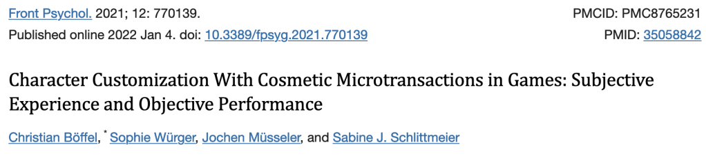En este estudio se llegó a la siguiente conclusión: “los resultados mostraron que la personalización aumentaba la identificación subjetiva con el personaje del jugador…además, la identificación se relacionó positivamente con lo competente que eres en el juego, la diversión y el rendimiento autoestimado.”